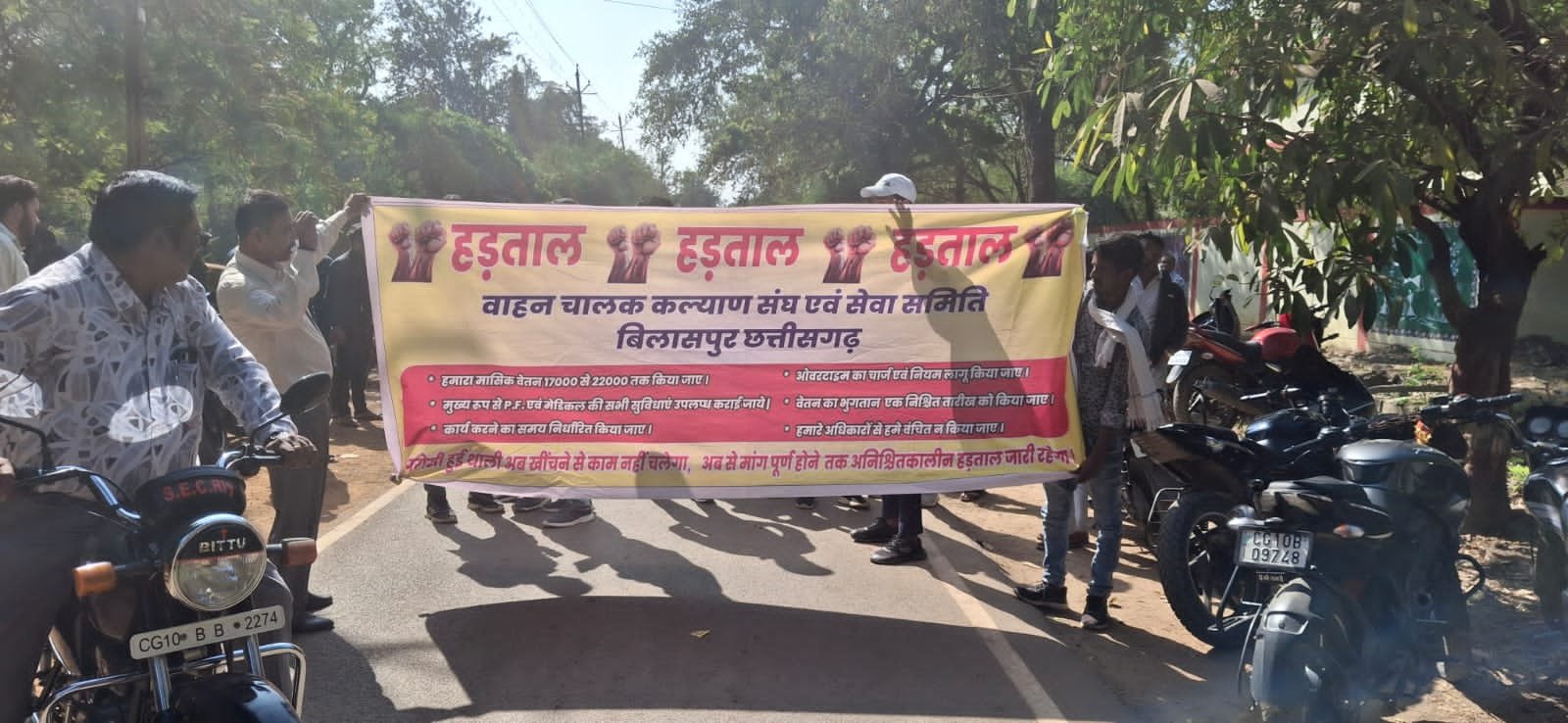 रेलवे परिछेत्र के भारत माता स्कूल के सामने आज का नजारा कुछ बदला हुआ है, जिले भर के वाहन चालक काम बंद कर धरने पर बैठ गए, प्रदर्शनकारियों का कहना है कि 2 साल पहले जब उन्होंने दक्षिण पूर्व मध्य रेलवे (SECR) जोन ऑफिस के सामने धरना प्रदर्शन किया था तब प्रशासन और ठेकेदार ने जल्द मांगे पूरी करने का आश्वासन दिया था। लेकिन 2 साल बीत जाने के बाद भी स्थिति जस की तस बनी हुई है।